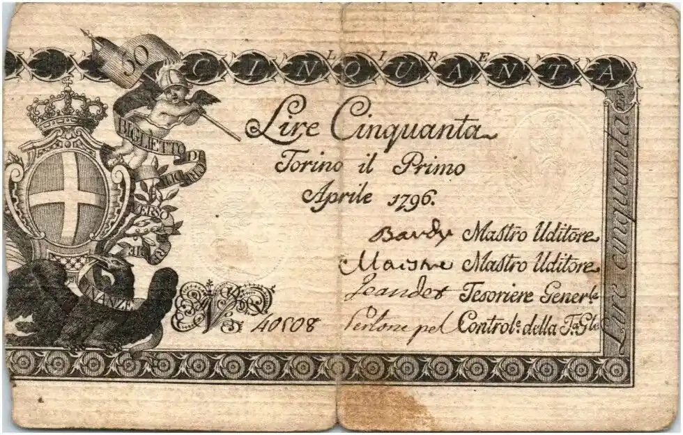 Billet Italie 50 Lire Aigle et Armoiries – 01-04-1796 – 40508 Vente Flash