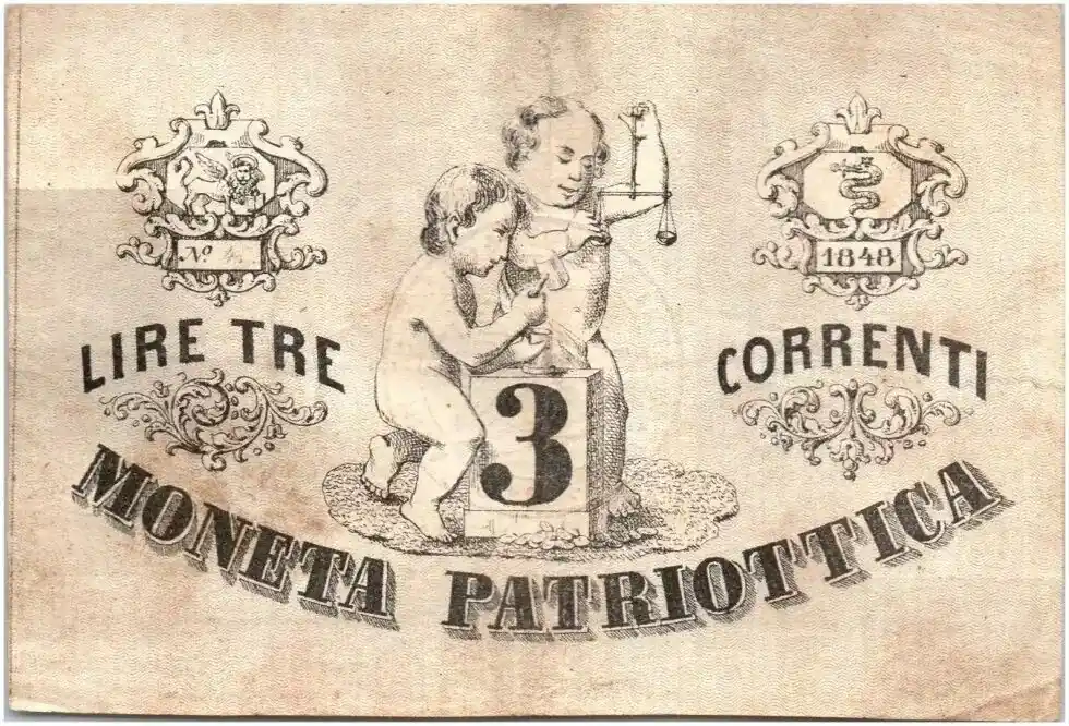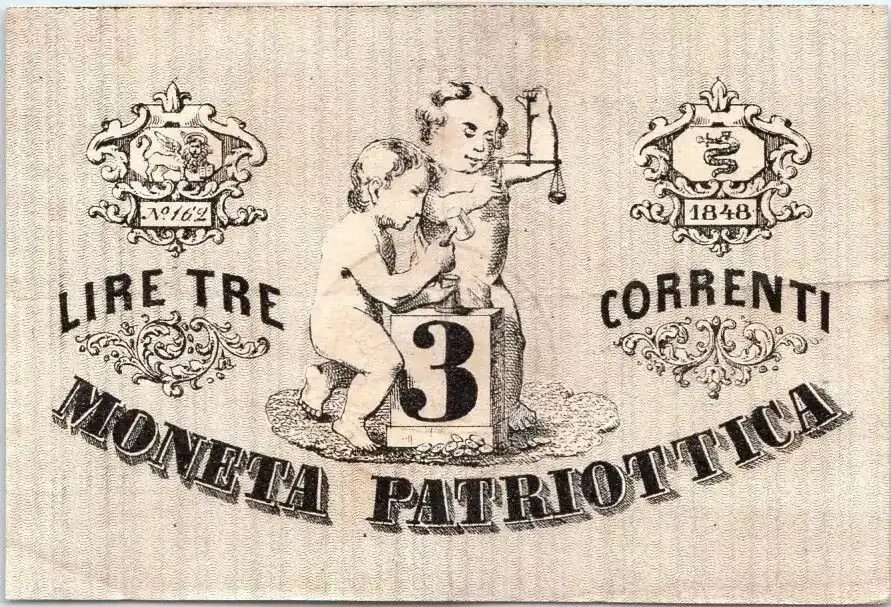 Billet Italie 3 Lire Venise et Milan – Lion de Venise 1848 Dernière Chance