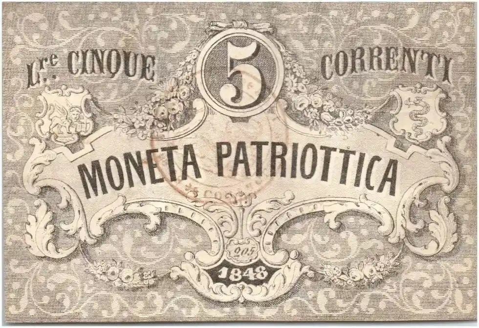 Billet Italie 5 Lire Armoiries de Venise et Milan – 1848 – 205 Offre Exclusive