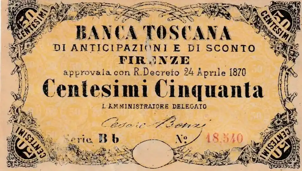 Original Billet Italie NR.10 50 Centesimi, Vert et noir – Série Bb – 1870