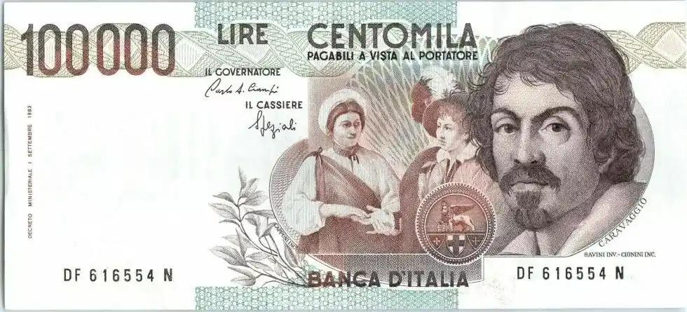 Paiement Sécurisé Billet Italie 100000 Lire Caravaggio – Fruits – 1983