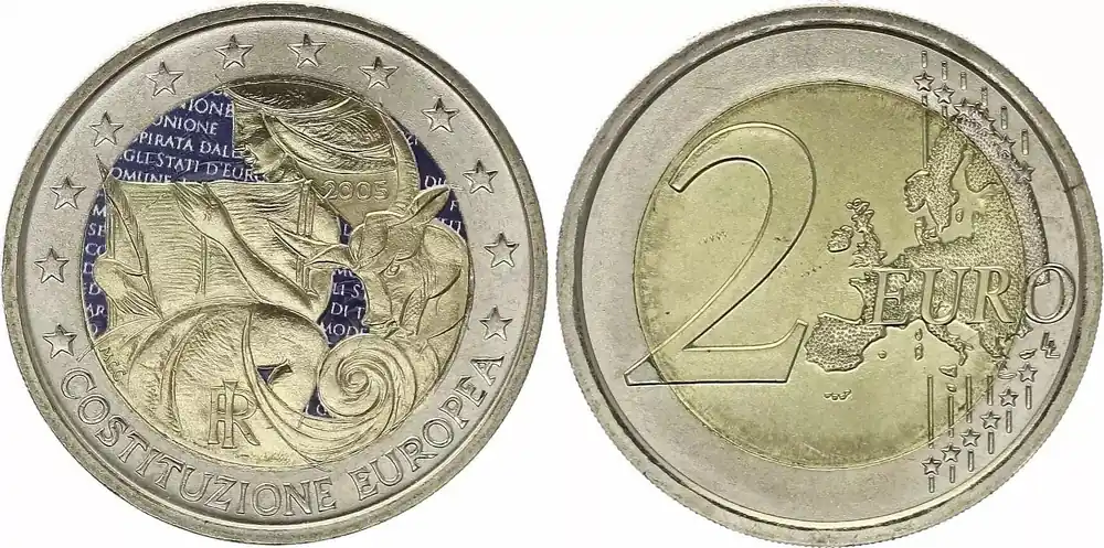 Soldes Italie 2 Euros – Constitution européenne – Colorisée – 2005
