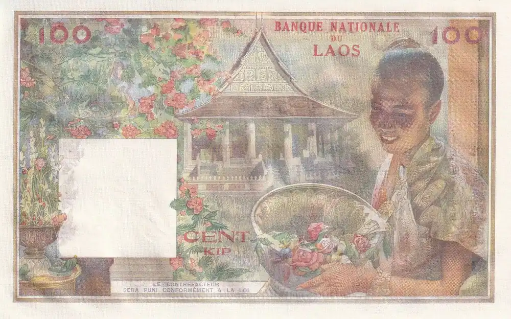 Artisanat Billet Laos 100 Kip – S. Vong – Femme – ND (1957) – Série C.12 – P.6