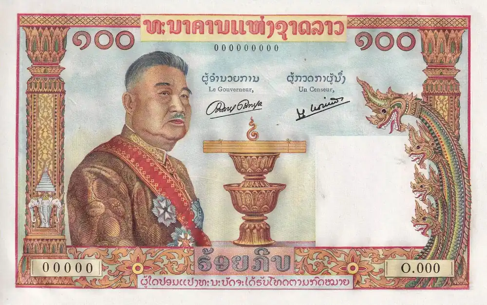 Bon Plan Billet Laos 100 Kip – S. Vong – Femme – ND (1957) – Spécimen – P.6s