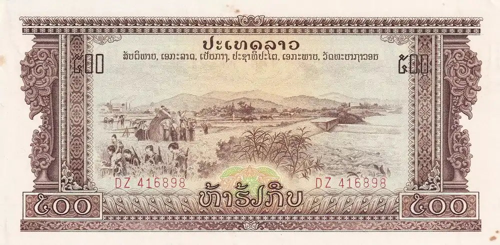 Billet Laos 500 Kip – Travailleurs armés – Soldats – ND (1968) – Série DZ – P.24 Meilleure Qualité
