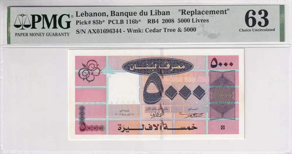 Billet Liban 5000 Livres – Rose – Remplacement – PMG 63 Commande En Gros