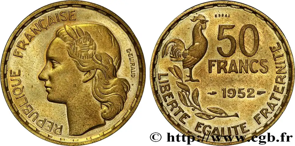 Acheter Direct Essai-piéfort au double de 50 francs Guiraud 1952 Paris GEM.221 EP1 fmd_600883 Modernes