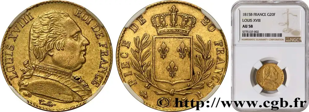 20 francs or Louis XVIII, buste habillé 1815 Rouen F.517/11 fmd_611606 Modernes Pas Cher
