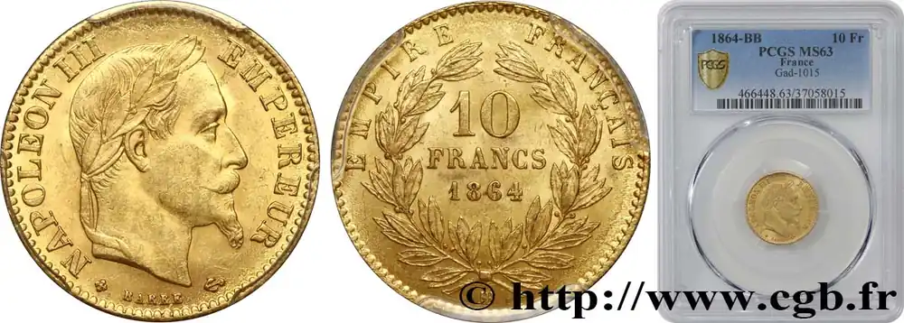 10 francs or Napoléon III, tête laurée 1864 Strasbourg F.507A/7 fmd_587688 Modernes Exclusif