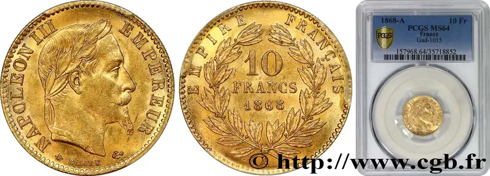 10 francs or Napoléon III, tête laurée 1868 Paris F.507A/17 fmd_587687 Modernes Marque