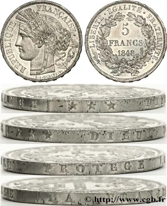 Concours de 5 francs, essai en étain par Oudiné, tranche en relief 1848 Paris VG.3089 var. fmd_601147 Modernes Livraison Gratuite