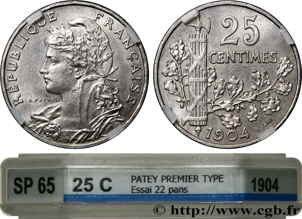 Essai de 25 centimes Patey, 2e type, tranche à 22 pans 1904 Paris F.169/1 fmd_600957 Modernes Commander Vite