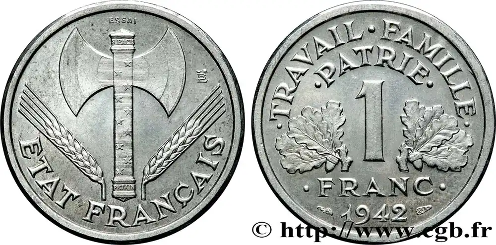 Authentique Essai-piéfort de 1 franc Francisque 1942 Paris GEM.98 EP fmd_600198 Modernes