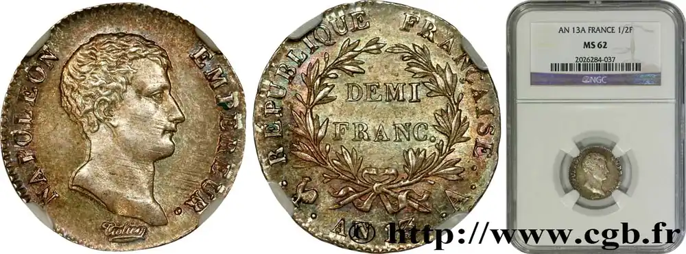 Demi-franc Napoléon Empereur, Calendrier révolutionnaire 1805 Paris F.174/10 fmd_520217 Modernes Authentique