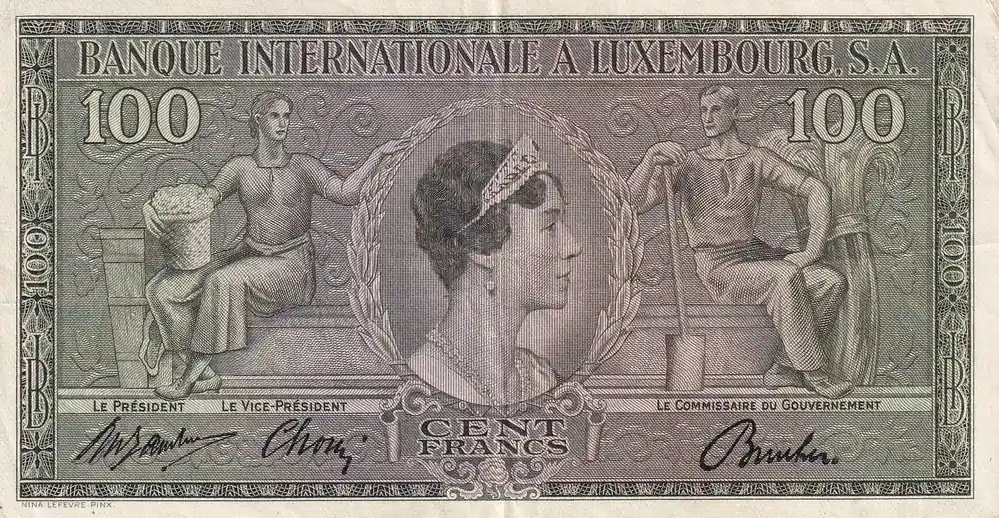 Billet Luxembourg 100 Francs – Grande Duchesse Charlotte – 1956 – Lettre K – P.13 Expédié Aujourd’hui