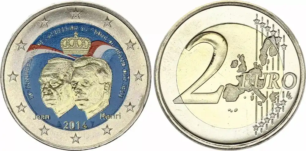 Luxembourg 2 Euros – Grand-Duc Jean – Colorisée – 2014 Populaire