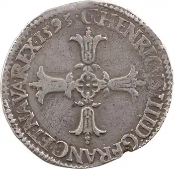 Henri IV, quart d’écu, croix feuillue de face, 1595 Lyon Offre Du Jour
