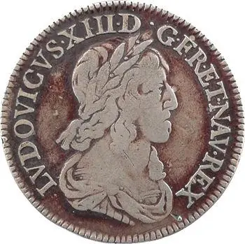 Louis XIII, quart d’écu d’argent à la mèche courte, 3e type (2e poinçon), 1643 Lyon (3 points) Meilleure Qualité