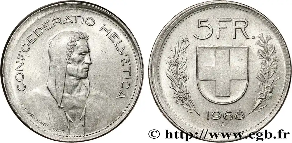 Prix Choc SUISSE 5 Francs Berger des alpes, frappe hors virole 1968 Berne – B fwo_795176 Monde
