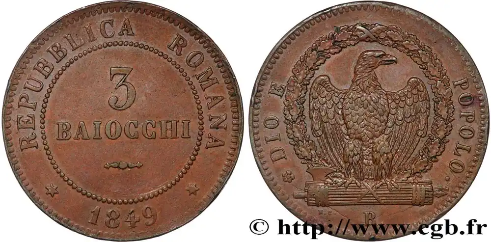 Prix Promo ITALIE – RÉPUBLIQUE ROMAINE 3 Baiocchi 1849 Rome fwo_825472 Monde