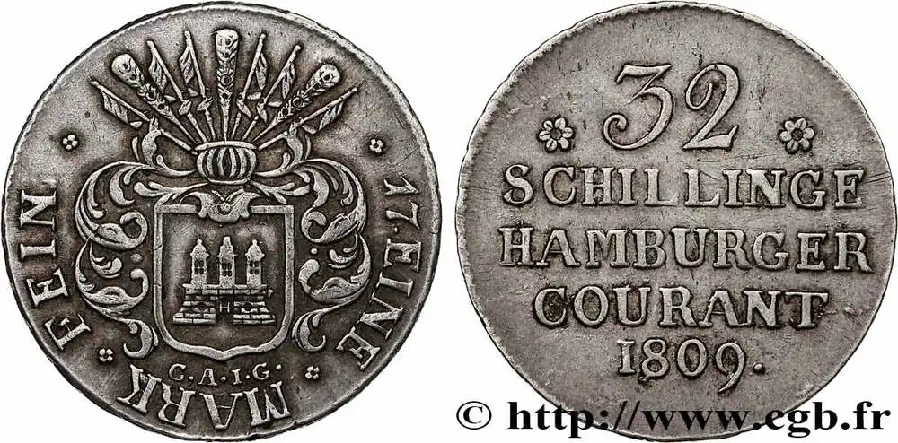 ALLEMAGNE – TERRITOIRE DE HAMBOURG 32 schillings, 2e type 1809 Hambourg fwo_782985 Monde Offre Du Jour