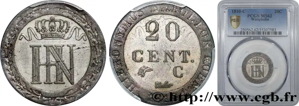ALLEMAGNE – ROYAUME DE WESTPHALIE – JÉRÔME NAPOLÉON 20 Cent 1810 Cassel fwo_792447 Monde Affaire À Saisir