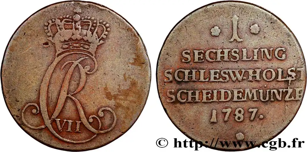 ALLEMAGNE – SCHLESWIG-HOLSTEIN 1 Sechsling Christian VII du Danemark 1787 fwo_810658 Monde Expédié Aujourd’hui