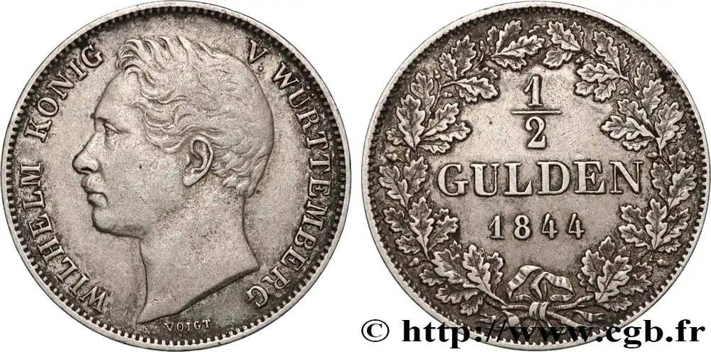 ALLEMAGNE – ROYAUME DE WURTTEMBERG – GUILLAUME I 1/2 Gulden 1844 fwo_894716 Monde Réduction