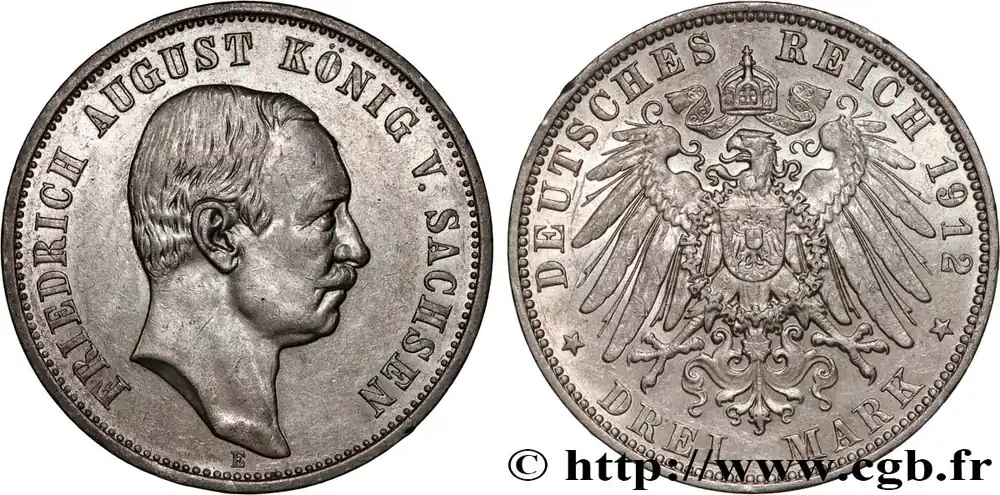 ALLEMAGNE – SAXE 3 Mark Frédéric-Auguste 1912 Dresde fwo_895540 Monde Prix Réduit