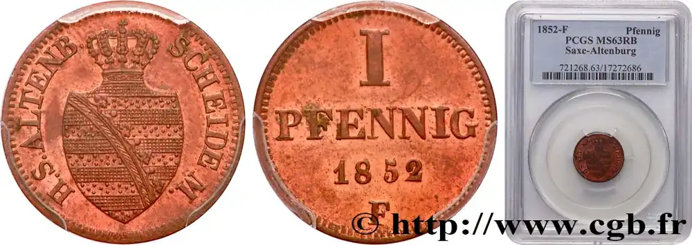 ALLEMAGNE – SAXE – ALTENBOURG 1 Pfennig Friedrich August II 1852 Dresde fwo_893811 Monde Prix Réduit
