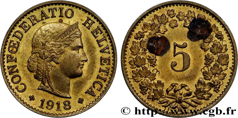 Produit De Marque SUISSE 5 Centimes (Rappen) Tête de Libertas 1918 Berne fwo_739419 Monde