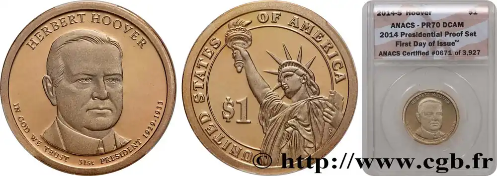 Solde ÉTATS-UNIS D’AMÉRIQUE 1 Dollar Herbert Hoover – Proof 2014 San Francisco fwo_766093 Monde