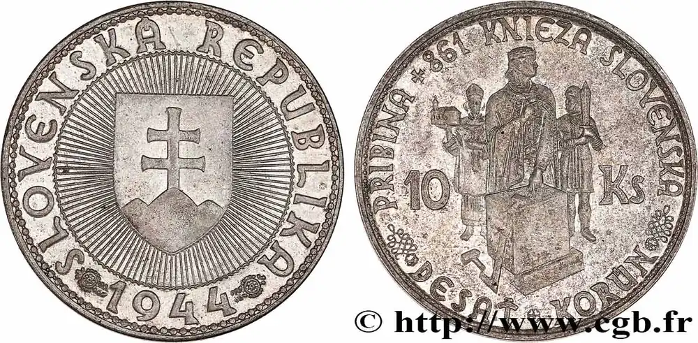 SLOVAQUIE 10 Korun Prince Pribina variété avec croix sur l’église 1944 fwo_772571 Monde Soldes