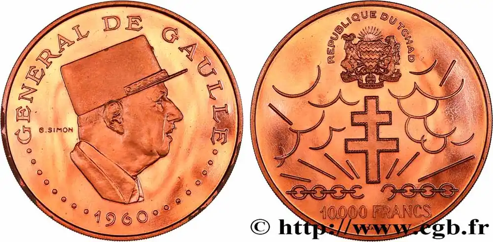 Acheter Direct TCHAD Essai 10000 Francs croix de Lorraine / Charles de Gaulle 1970 Paris fwo_740858 Monde