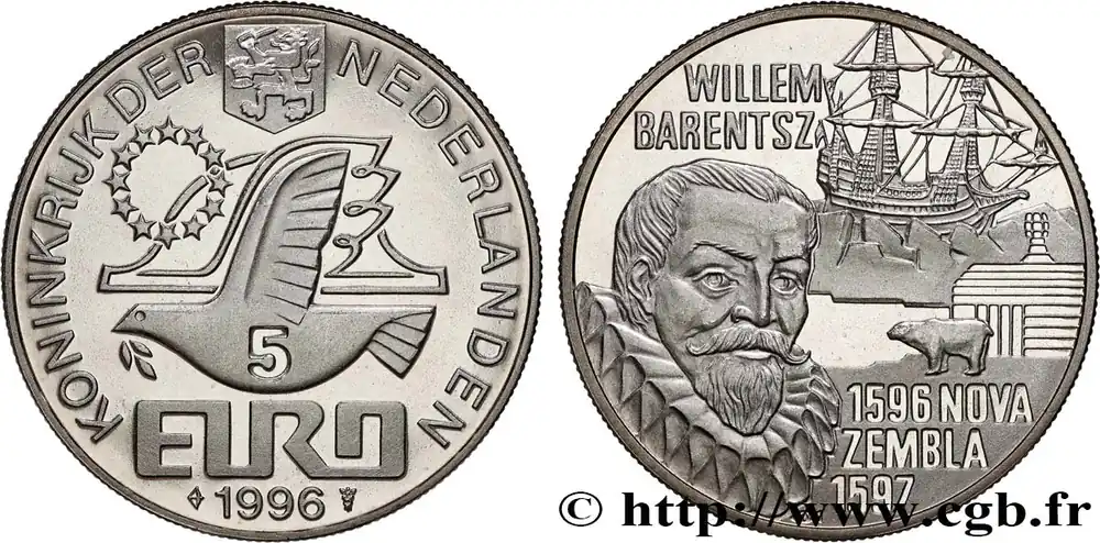 Acheter Direct PAYS-BAS 5 Euro colombe de la paix / Willemm Barentsz 1996 Utrecht fwo_747269 Monde