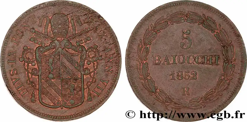 Acheter En Ligne ITALIE – ÉTATS DU PAPE – PIE IX (Jean-Marie Mastai Ferretti) 5 Baiocchi an VII 1852 Rome fwo_765979 Monde