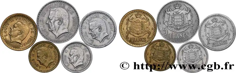 Acheter Direct MONACO Lot 5 pièces 1, 2 et 5 Francs Louis II / armoiries 1943-1945 Paris fwo_823116 Monde