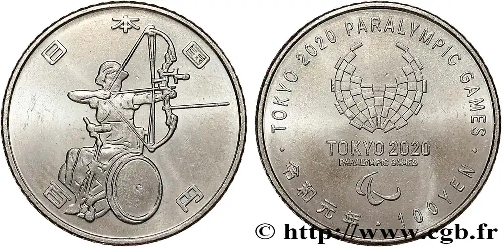JAPON 100 Yen Jeux Para-Olympiques Tokyo 2020 – tir à l’arc (2019) Hiroshima fwo_789343 Monde Fait Main