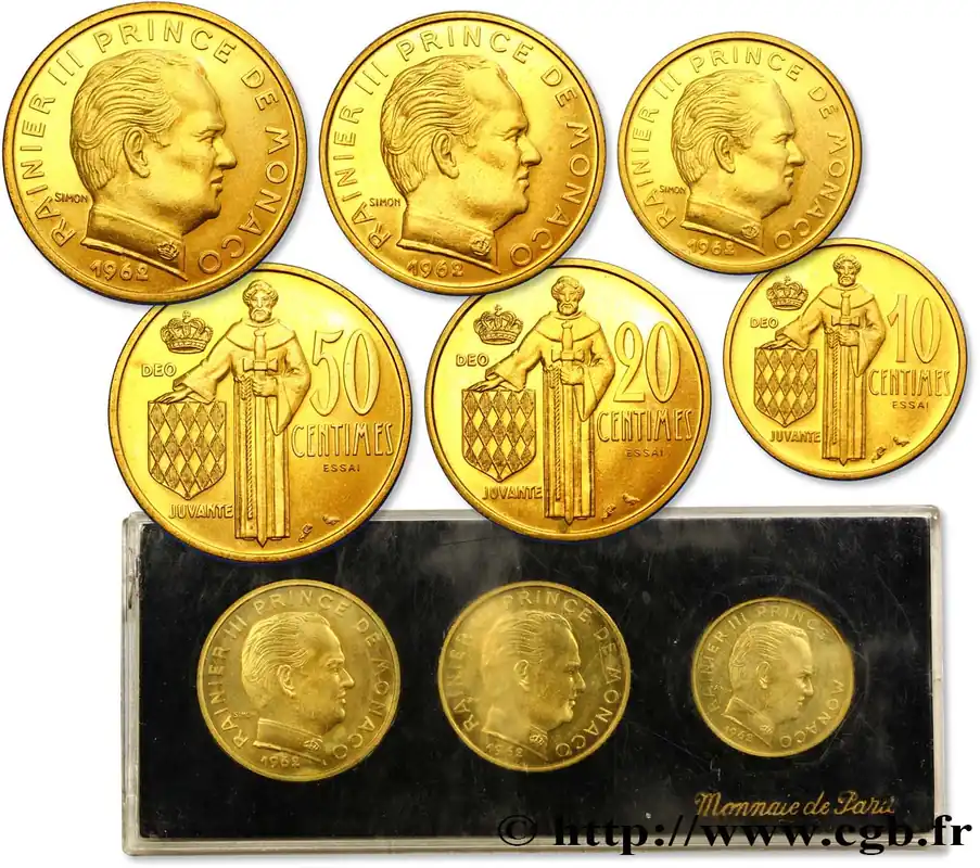 Marque MONACO – PRINCIPAUTÉ DE MONACO – RAINIER III Essais de 10, 20 et 50 Centimes 1962 Paris fwo_765575 Monde