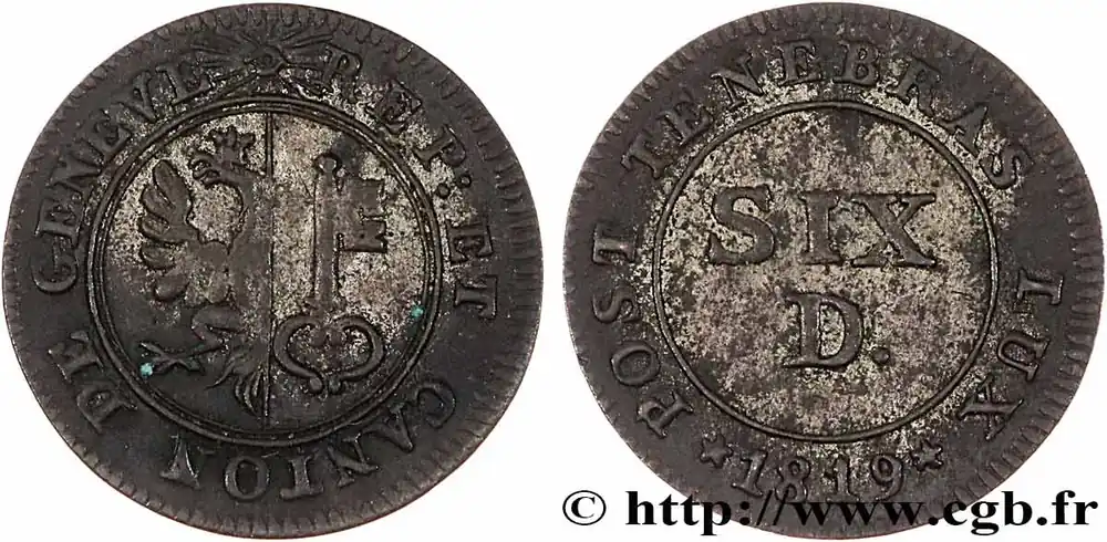 Marque SUISSE – RÉPUBLIQUE DE GENÈVE 6 Deniers 1819 fwo_787545 Monde