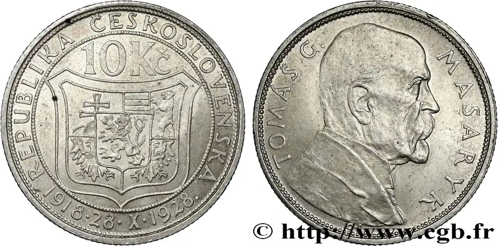 Marque TCHÉCOSLOVAQUIE 10 Korun Thomas Masaryk 1928 fwo_831050 Monde