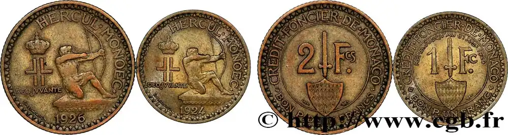 MONACO Lot 1 et 2 francs émission du Crédit Foncier de Monaco 1924 Poissy fwo_823140 Monde Remise