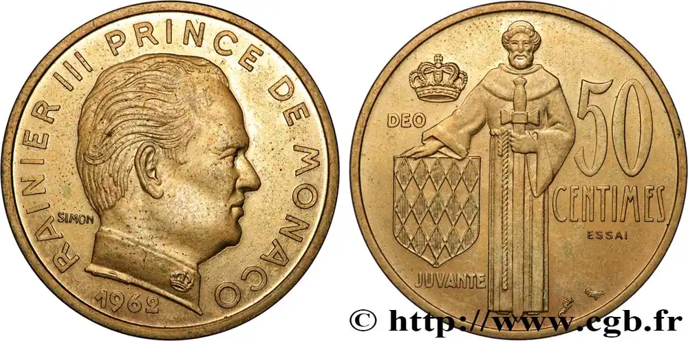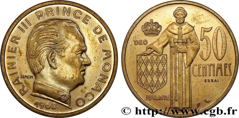 MONACO Essai de 50 Centimes Rainier III 1962 Paris fwo_883124 Monde Meilleure Vente