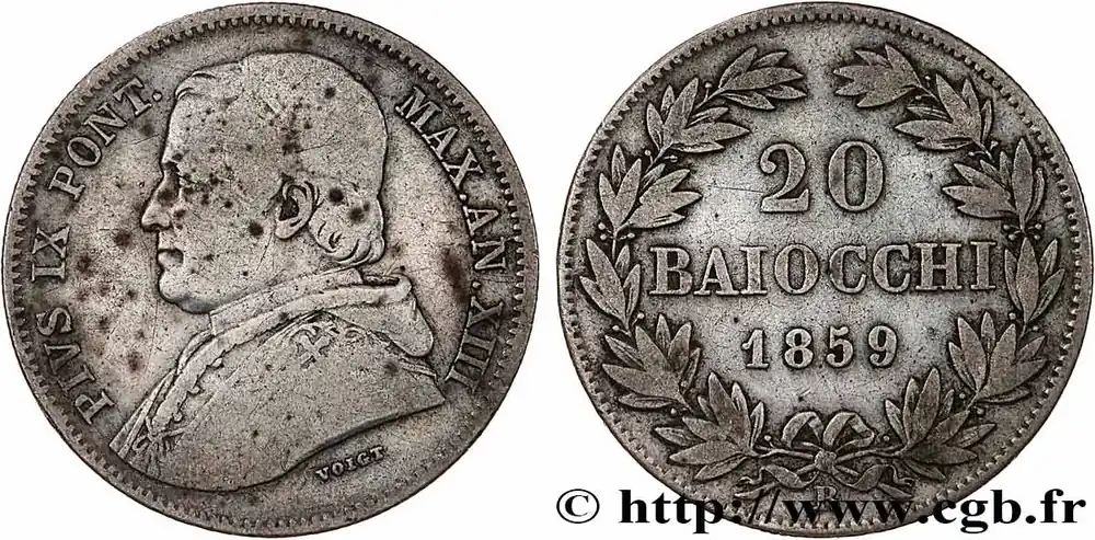 Must-Have VATICAN ET ÉTATS PONTIFICAUX 20 Baiocchi Pie IX an XIII 1859 Rome fwo_787549 Monde