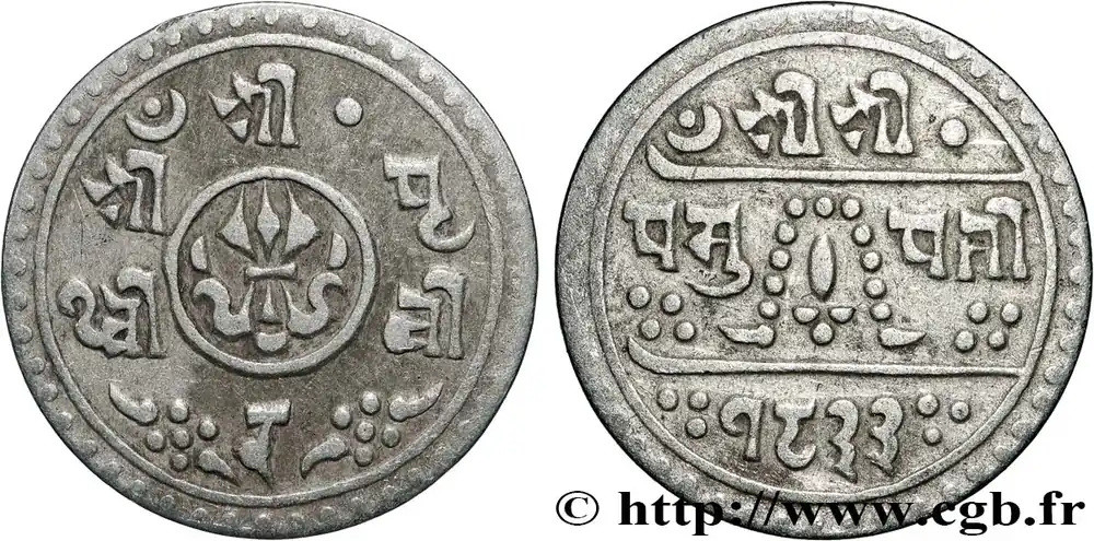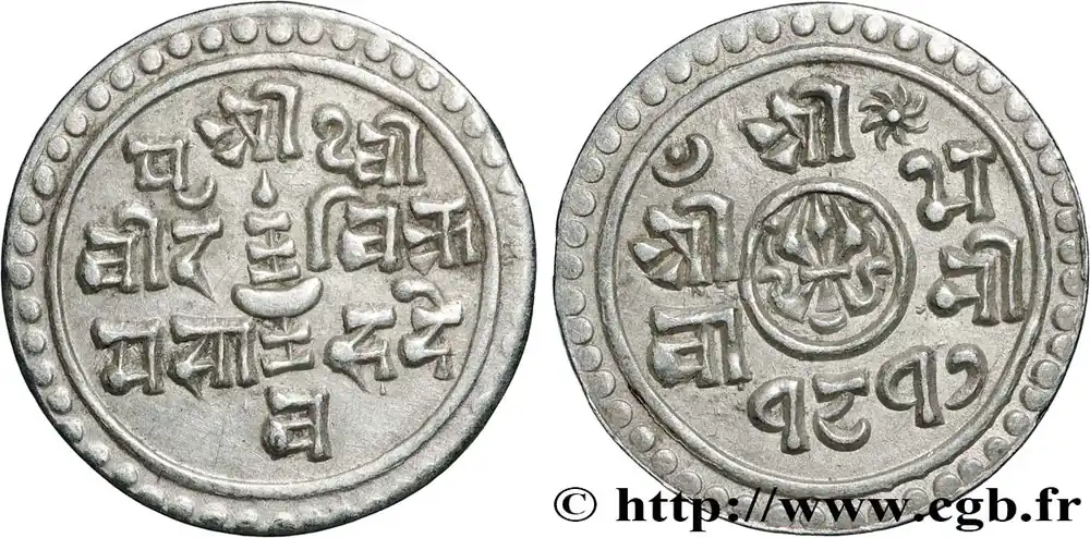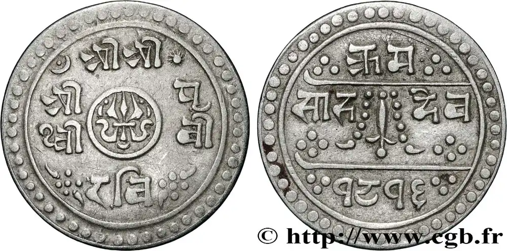 NÉPAL 1/4 Mohar Prithvi Bir Bikram SE 1817 (1895) fwo_864451 Monde Original