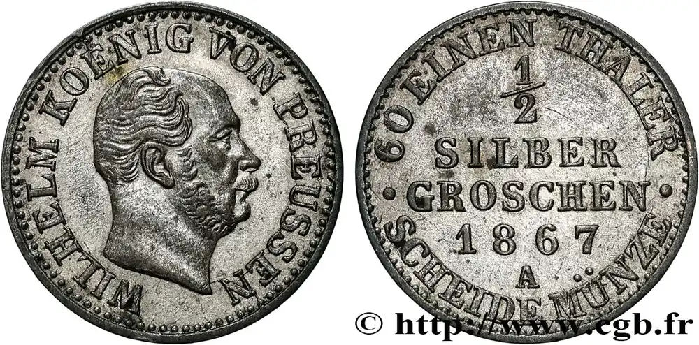 ALLEMAGNE – PRUSSE 1/2 Silbergroschen Guillaume Ier 1867 Berlin fwo_862376 Monde Haute Qualité