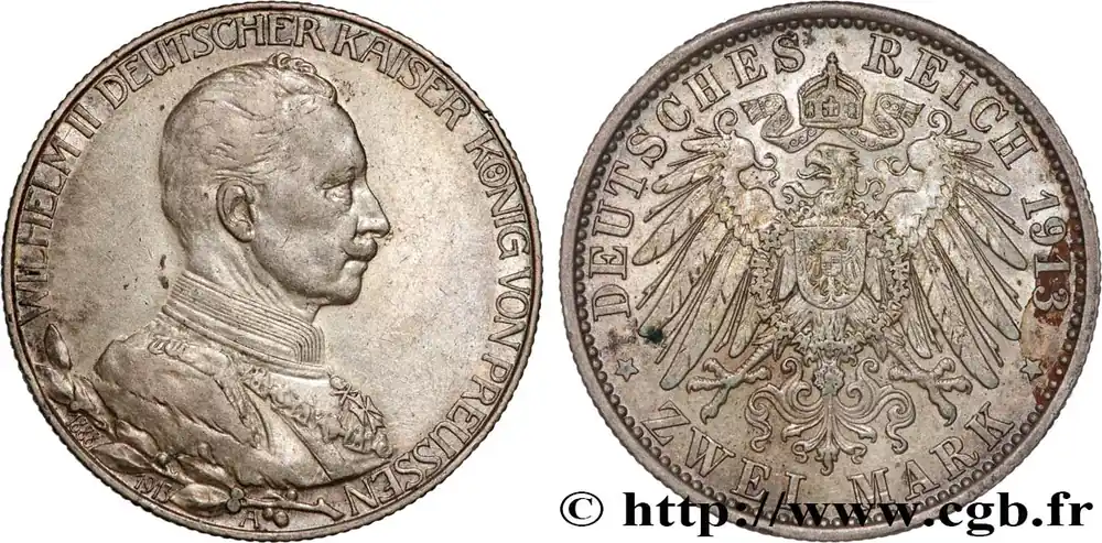 ALLEMAGNE – PRUSSE 2 Mark 25e anniversaire de règne de Guillaume II 1913 Berlin fwo_776391 Monde Satisfait Ou Remboursé