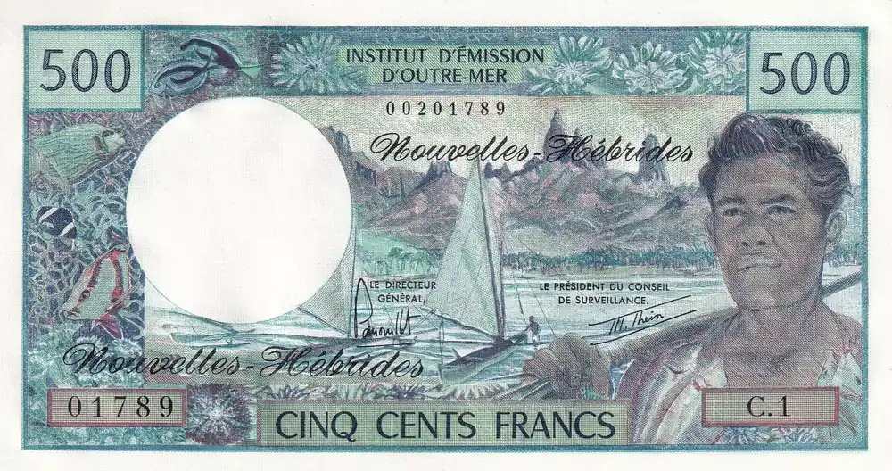 Billet Nouvelles Hébrides 500 Francs – Polynésien – Pirogue – ND (1979) – Série N.1 – P.19b Réduction