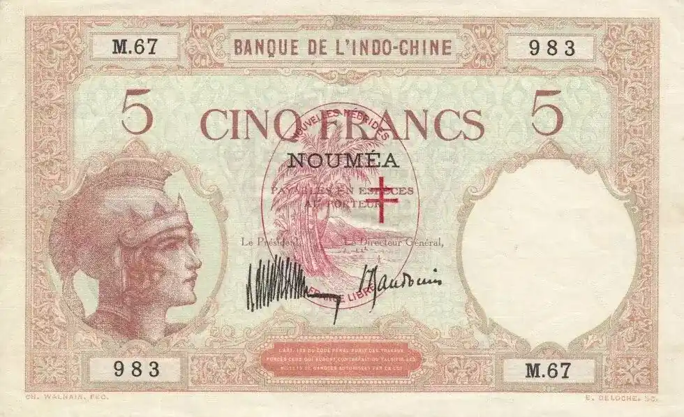 Commande En Gros Billet Nouvelles Hébrides 5 Francs Walhain surchargé France Libre – 1941 Série M.67
