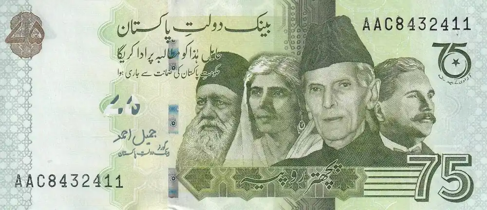 Billet Pakistan 75 Rupees – M. Ali Jinnah – 75 ans de l’Indépendance du Pakistan – 2022 – Série AA – P.NEW Prix Bas